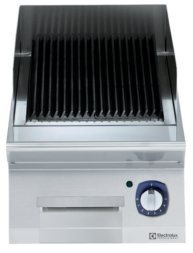 Electrolux Professional električni žar z U-oblikovanimi kuhalnimi rešetkami iz nerjavečega jekla, ki omogočajo hitro segrevanje in optimalen stik hrane s površino za pečenje. Rešetke so odstranljive, kar omogoča enostavno čiščenje in vzdrževanje po uporabi.
