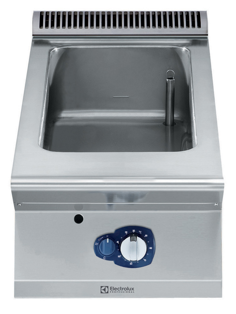 Electrolux Professional je bain-marie, ki deluje na principu vodne kopeli, hrana se segreva posredno preko vroče vode, kar zagotavlja nežno in enakomerno segrevanje. Vgrajeni Incoloy grelni elementi zagotavljajo učinkovito segrevanje vode, temperatura le te je termostatsko nadzorovana (do cca. 90 °C), kar omogoča ohranjanje jedi na optimalni temperaturi brez izgube kakovosti.