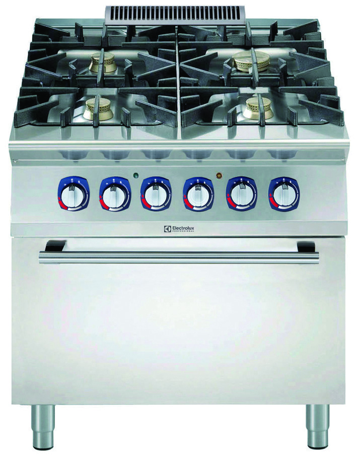 Electrolux Professional je kuhalna enota opremljena s štirimi plinskimi gorilniki (1 x 10 kW, 3 x 6 kW), kar omogoča visoko fleksibilnost pri pripravi hrane in uporabo različnih velikosti posod.